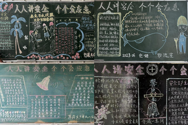 宣傳造氛圍。開展安全主題板報評比活動,各部門、車間的黑板報緊緊圍繞安全月主題,員工們精心設計內容、設計版面,主題鮮明、形式多樣的版報傳遞出各崗位員工的安全理念,進一步宣傳了安全行為規范;開展安全生產安全知識“大考試”。根據安全生產月活動宣傳培訓內容以及公司發布的《安全生產月學習資料》、各車間應急處置卡等組織學習考試,以測促學、以學促練,營造濃厚的學習氛圍。